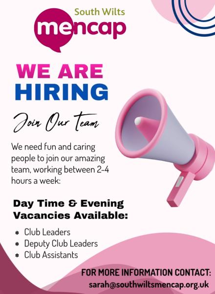 At South Wilts Mencap we provide clubs and activities for the learning disabled community in and around Salisbury and the South Wilts area. Our clubs cater for ages 13 - over 50's so there is a varied range of age groups to work with. Please see our website www.southwiltsmencap.org.uk for more information about what we do.