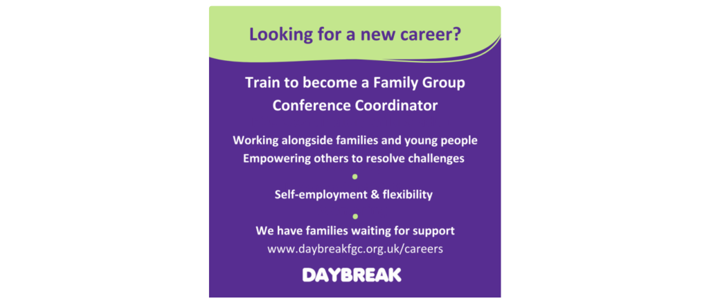 Daybreak, a registered charity, is looking for new self-employed Independent Coordinators across the South of England. We are offering an opportunity for individuals with relevant experience to train as Family Group Conference (FGC) Coordinators and help families tackle challenges, strengthen relationships, and create lasting solutions.