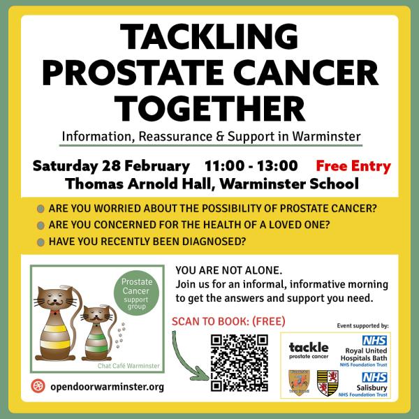 The event, taking place on Saturday 28 February from 11:00 to 13:00 at Thomas Arnold Hall, Warminster School, aims to bring clinical advice and community support together in one room. The organisers have designed the morning to be informal and welcoming, specifically targeting those who might be worried about symptoms, concerned for a partner, or recently diagnosed.