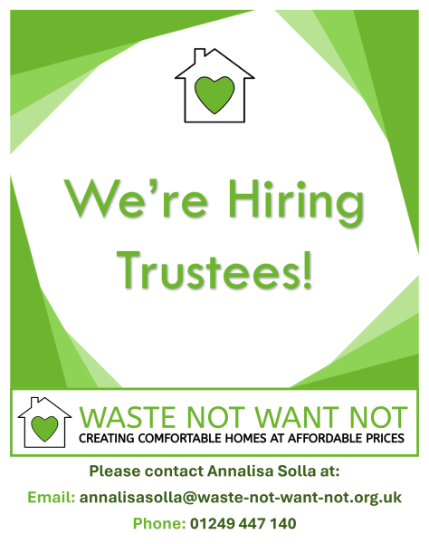 Waste Not Want Not is a registered charity in Chippenham; our small staff team and brilliant volunteers support people who need affordable household goods, individuals rebuilding their lives after crisis, and local residents seeking work experience or a way to reduce isolation. We also help the environment by keeping usable items out of the waste stream.